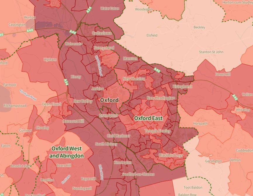 But Headington isn't alone in this: many other areas of Oxford are also pollution hotspots, with noise pollution being the only type of pollution below a harmful threshold in those that aren't - i.e. they all have harmful levels of water, air and light pollution. Interestingly, some areas on the outskirts of Oxford, such as Beckley and Horspath; Botley and Kennington; Dean Court, Cumnor and Appleton; Radley, Wooton and Marcham; and Berinsfield and Wittenham, suffer with harmful levels of noise pollution but not air pollution.