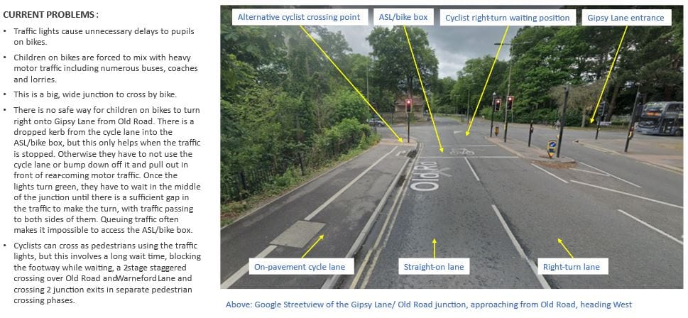 The slides below set out the current problems with this junction in more detail, from the perspective of children cycling to/from Cheney School.