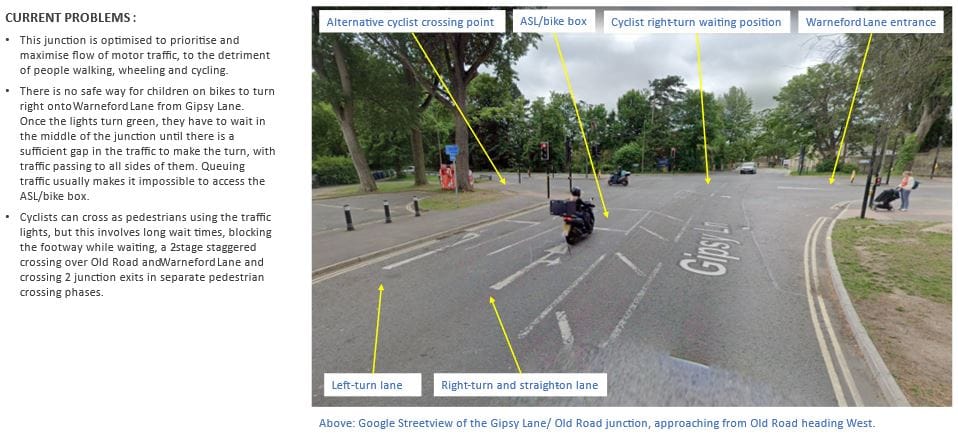 That’s why we asked Infra CGI to create a visualisation of the Gipsy Lane-Old Road-Roosevelt Drive-Warneford Lane junction rebuilt in line with best practice seen elsewhere around the country (see links above for examples).